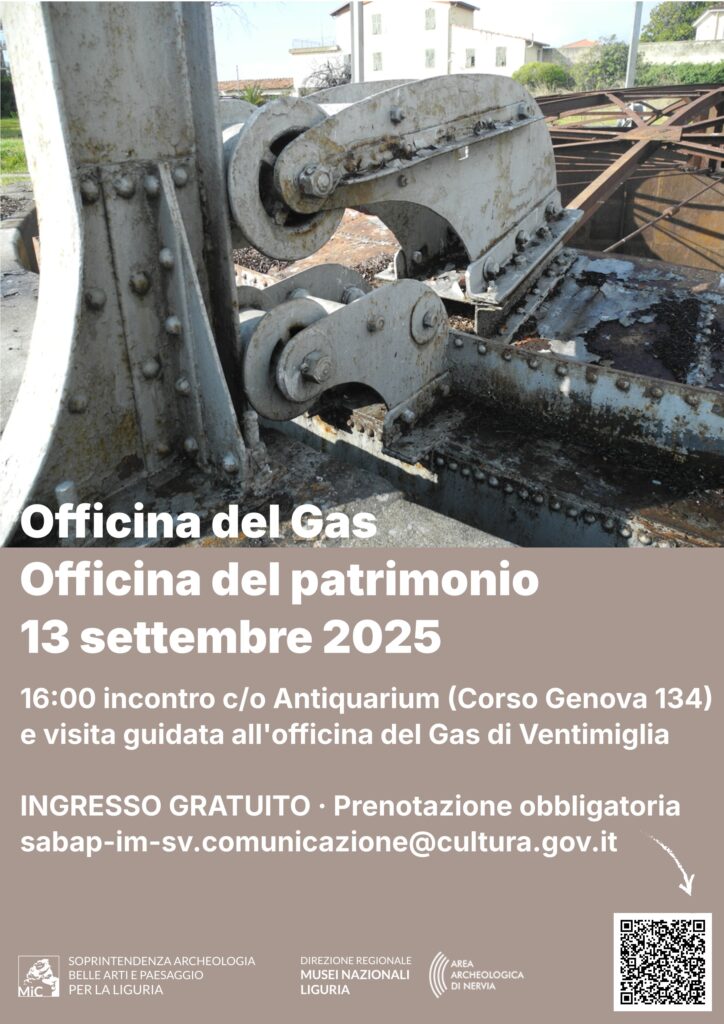 L’Officina del Gas di Ventimiglia è al centro di un progetto di recupero per rendere l’area un luogo della cultura aperto al pubblico, in cui coesisteranno in armonia l’archeologia romana e quella industriale. Nel 2025 ha preso il via la prima fase con un percorso partecipato che ha permesso alle cittadine e cittadini di Ventimiglia di visitare l’area e intervenire nel merito della realizzazione del progetto. L’evento di valorizzazione consentirà una nuova visita guidata all’area, aperta al pubblico da parte della Soprintendenza in collaborazione con la Direzione Regionale Musei Nazionali.