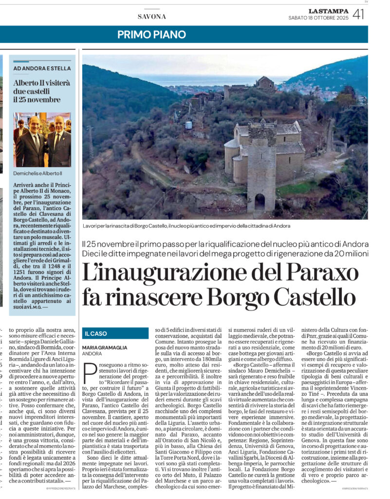 Grazie ad un importante contributo finanziario PNRR del Mistero della Cultura il Borgo Castello di Andora si avvia ad essere uno dei più significativi esempi di recupero e valorizzazione di questa peculiare tipologia di beni culturali e paesaggistici in Europa. Luoghi abbandonati o solo residualmente frequentati tornano ad essere luoghi di vita e condivisione.